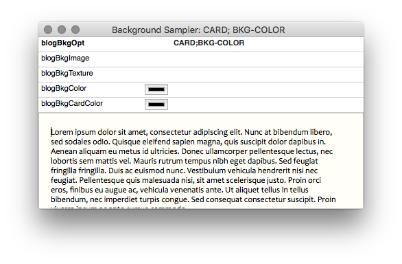 Export using both CARD and BKG-COLOR. The colors come from the PostBody Widget in the Styles Dash.