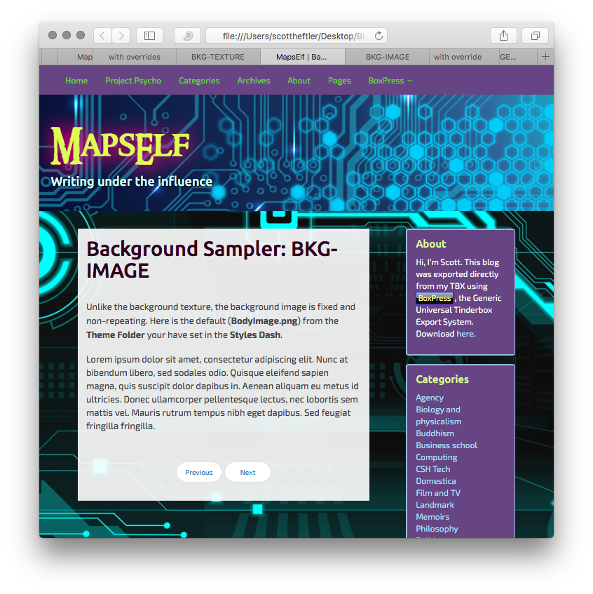 Export using BKG-IMAGE. But now the Theme Folder default image (BodyImage.png) is overridden by the local setting.