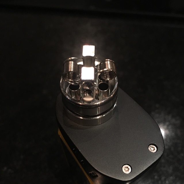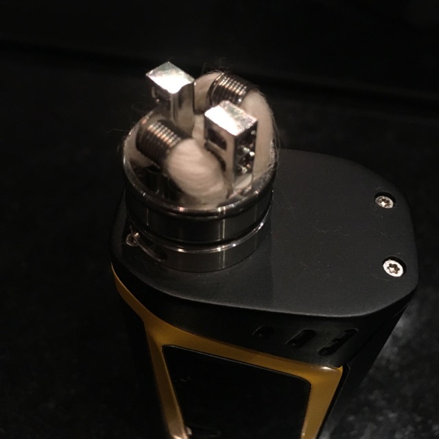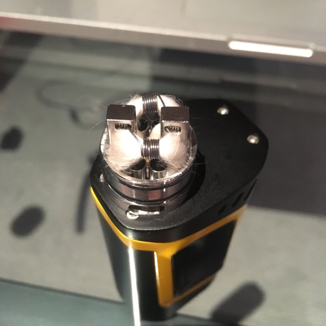 Huge 4 mm coils. Wicks tucked—I mean jammed into those tiny corners. No bueno.