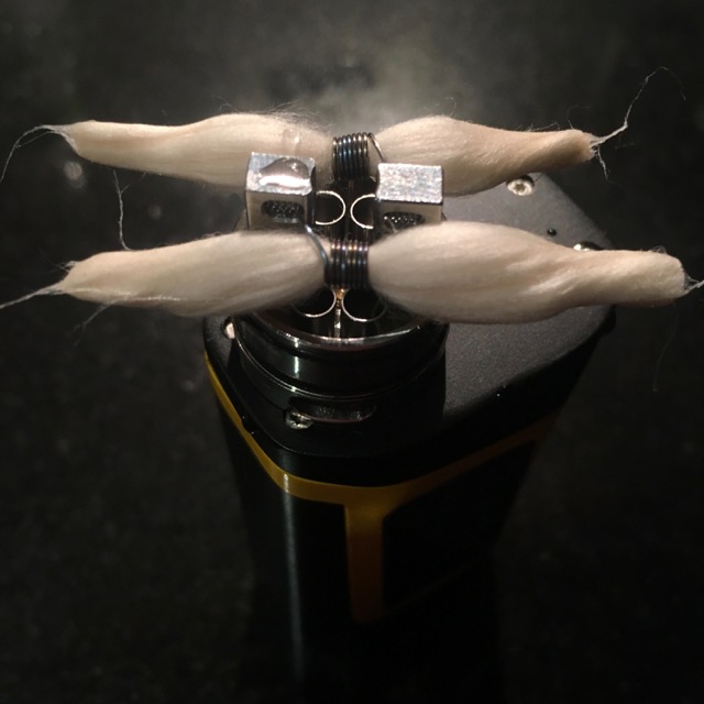 Sickly thin tendrils of cotton, slithering from skinny sleeves. Very little juice you do absorb. arise four smokestacks bold. Tuck ye yer wads into the tiny corners. A dense wad of shitty straight cotton. Packed so tightly that it will not absorb. Because I made the ID 4.0 mm. Like an anus.