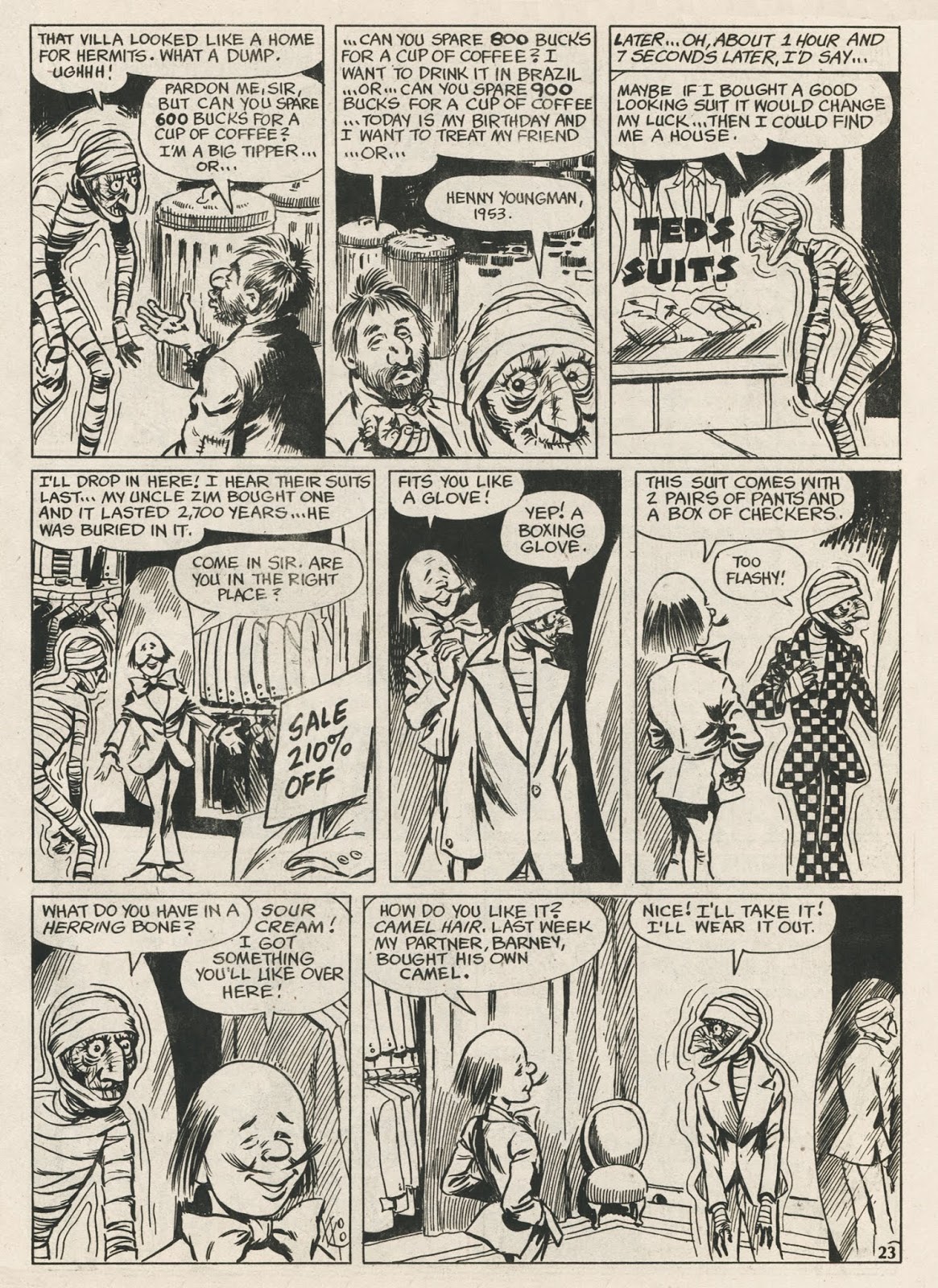 I must have read this story 100 times. Nothing, not a single panel in the story, was funny. But the concept—waking up 2000 years later only to be evicted and deprecated, is infinitely interesting. And this is not just any “Rip Van Winkle” imitator; this is The Mummy, one of the sacred gods that are the Universal Monsters.