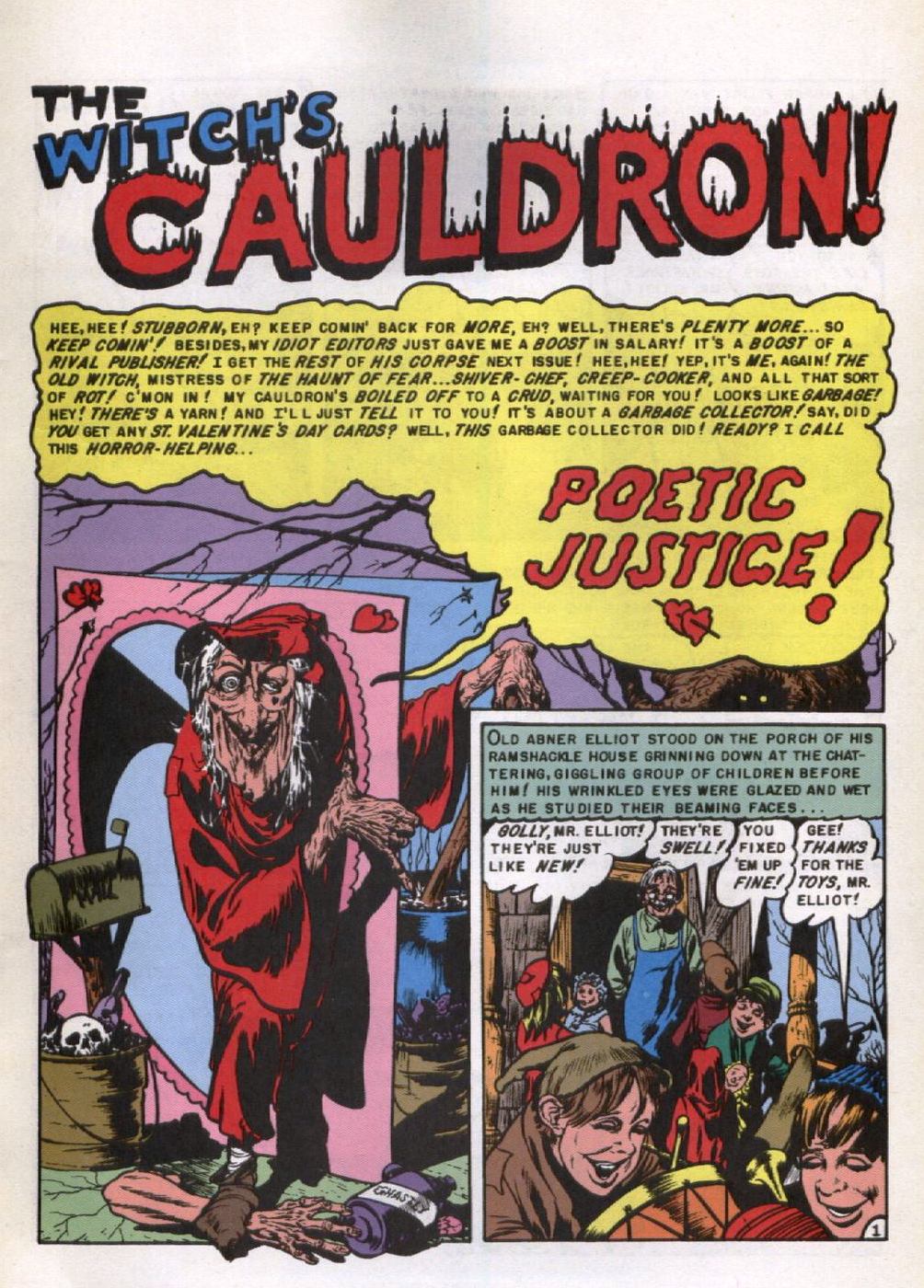 1. This story is brought to you by Old Witch. (Each story has either Crypt Keeper, Vault Keeper, or Old Witch as its guide.)
